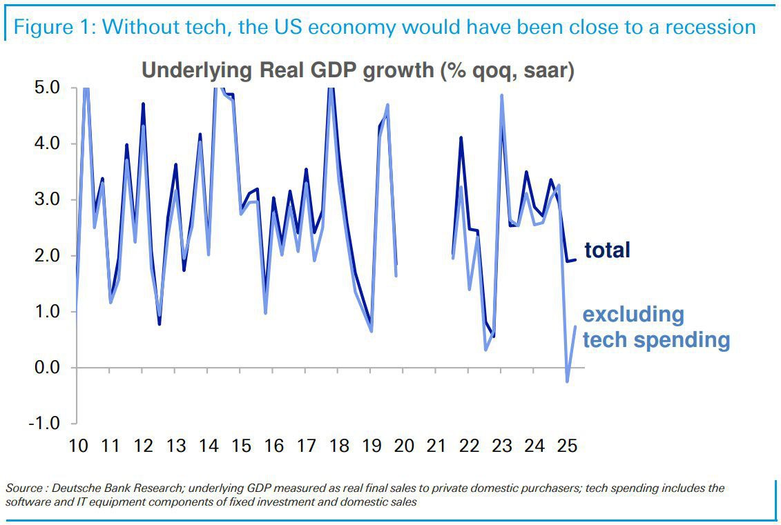 لكانت الولايات المتحدة 🇺🇸 قريبة من الركود 📉 أو داخلة فيه في وقت سابق من هذا العام، بحسب دويتشه بنك DB 🏦 وسارافيلوس.